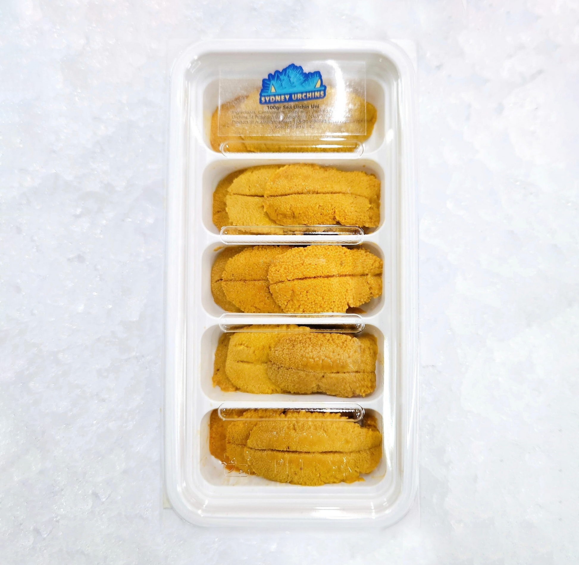 Treat yourself to the incredible flavour of Sydney Urchin's Sea Urchin Roe, also known as Uni, carefully packed in a five-pocket tray to ensure freshness and a premium presentation.